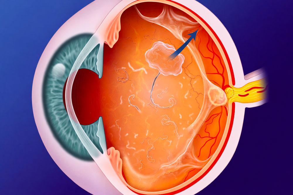 Mais lors de sa séparation, il peut tirer sur la rétine et provoquer :