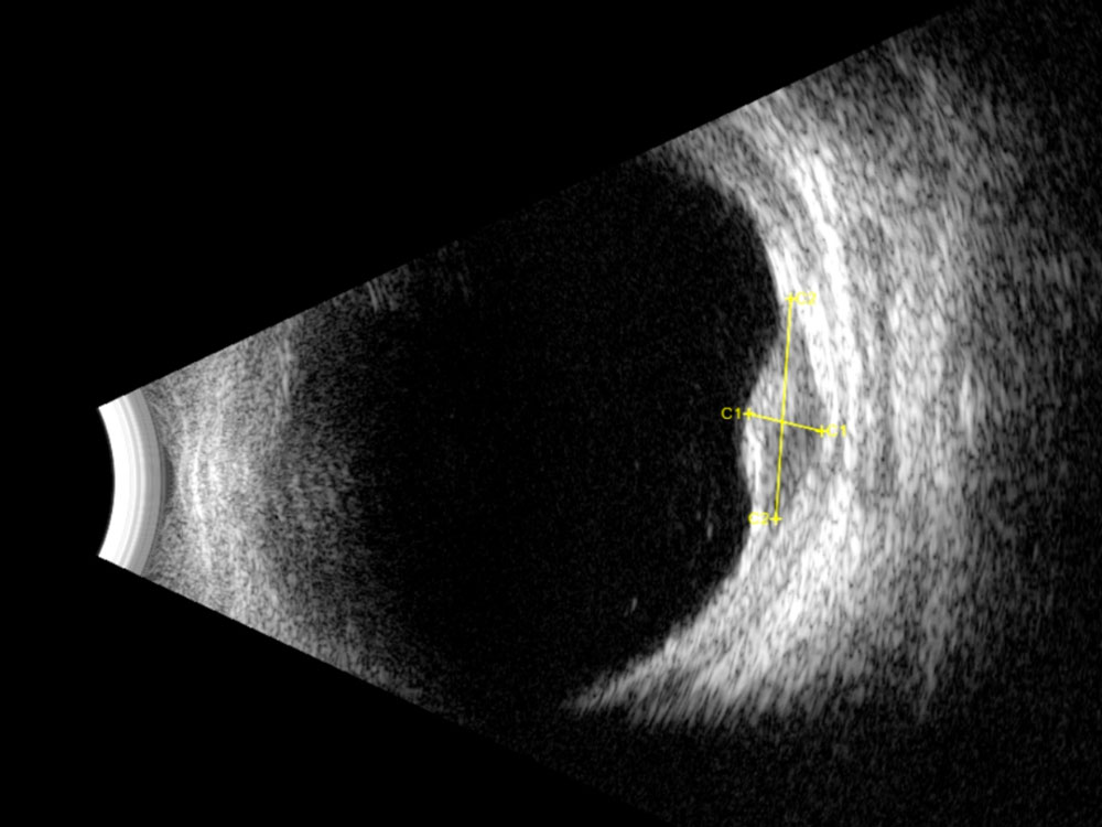 - Alternative à la biométrie optique en cas de cataracte très dense.